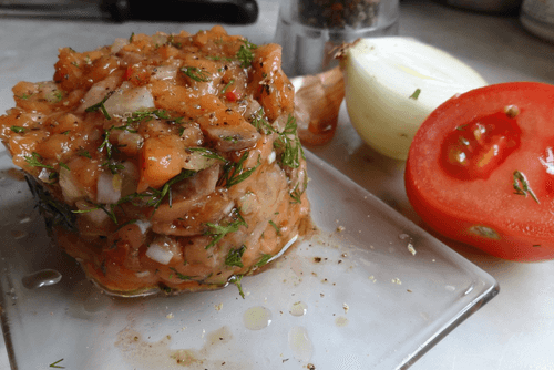 Тартар из лосося с помидорами