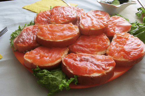 Положить на каждый кусочек хлеба ломтик рыбы.