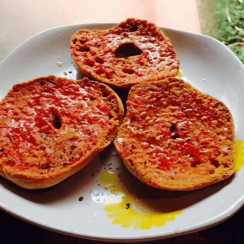 Багель с помидорами и чесноком — это простое, но невероятно ароматное блюдо итальянской кухни. Его корни уходят к традиционным тосканским рецептам, где чеснок, свежие томаты и оливковое масло создают идеальную гармонию вкусов. Хрустящий багель, натертый пикантным чесноком, сочные помидоры и богатое маслянистое послевкусие — этот рецепт воплощает в себе дух средиземноморского наслаждения. Посыпанный солью и перцем, он становится еще более выразительным. В Италии такие закуски часто подают к легким летним обедам или как аперитив перед основным блюдом. Добавление свежего базилика придаст багелю нотку свежести, а его универсальность делает его отличным дополнением к любым трапезам.