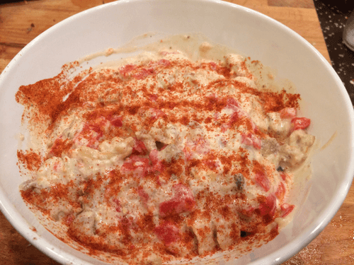 Через 20 минут добавьте к нему красный перец. Выньте из духовки и поместите в пластиковый контейнер и уберите в холодильник.