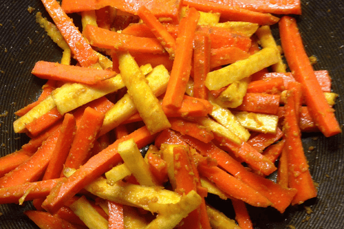 Морковь и пастернак, глазированные в имбирно-медовом соусе с куркумой