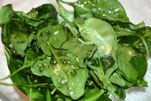 Застелите противень пергаментной бумагой, разложите шпинат в 1 слой. Используйте только плотную пергаментную бумагу или тефлоновый лист для выпечки. Бумага для выпечки или фольга не подойдут, чипсы будет сложно отделить.