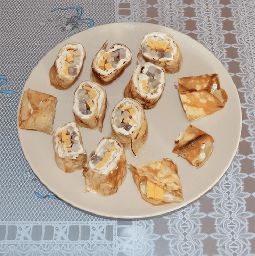 Роллы из блинов с селедкой и творожным сыром