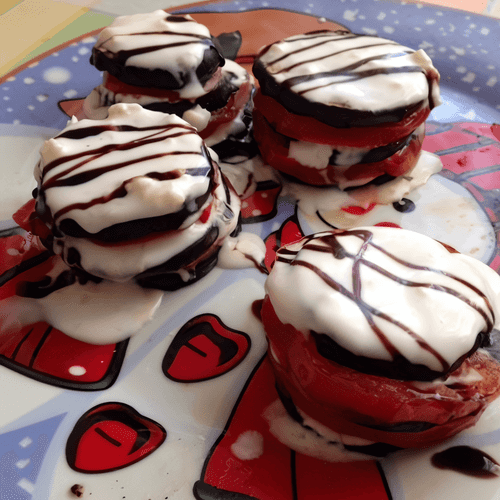 Башенки из баклажанов и томатов — это элегантное и простое блюдо греческой кухни, воплощающее средиземноморскую страсть к свежим овощам и легким соусам. Исторически греки ценят баклажаны за их насыщенный вкус и способность гармонично сочетаться с томатами и травами. В этом рецепте сочные ломтики баклажана, обжаренные до румяной корочки, чередуются со сладкими томатами, создавая восхитительную игру текстур. Натуральный йогуртовый соус с чесноком добавляет пикантности, а прованские травы и бальзамический топпинг завершают композицию с ароматной изысканностью. Эти башенки идеально подходят как закуска или легкое основное блюдо, их можно подавать теплым или холодным, наслаждаясь гармонией вкусов, вдохновленных солнечными берегами Эгейского моря.