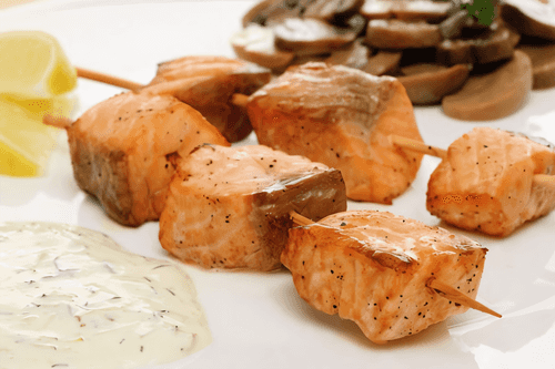 Шашлык из лосося — это изысканное блюдо финской кухни, в котором гармонично сочетаются свежесть морепродуктов и ароматный маринад. Исторически финны ценят рыбу за ее насыщенный вкус и питательность, а жарка на углях придает блюду особенную текстуру. Маринад из соевого соуса, меда и перца чили создаёт баланс сладкого, солёного и пикантного вкусов, подчеркивая нежность лосося. Шашлык готовится быстро — всего 20 минут на маринование, а затем обжарка до золотистого цвета. Дополняется свежим сладким перцем, маслинами и зеленью, придающими блюду праздничный вид. Идеально подходит как для летнего пикника, так и для уютного домашнего ужина, создавая атмосферу теплого северного вечера.