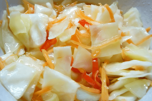 Маринованная капуста – классическая русская закуска, обладающая ярким, освежающим вкусом. Сочетание хрустящей капусты, сладковатой моркови, пикантного чеснока и жгучего перца создаёт богатую палитру вкусов. Этот рецепт уходит корнями в традиции русской кухни, где соления и маринады служили не только способом хранения, но и средством усиления вкуса овощей. Маринад, насыщенный солью, сахаром и уксусом, придаёт капусте особую кисло-сладкую нотку и делает её идеальной закуской к мясным блюдам, картофелю или даже как самостоятельное угощение. После двухдневной выдержки под грузом капуста наполняется ароматами специй, приобретая глубокий насыщенный вкус. Этот рецепт – простой, но изысканный способ добавить яркость в любое застолье.