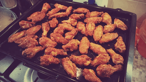 Выложите крылья на противень и прогрейте в духовке в течение 5 минут.