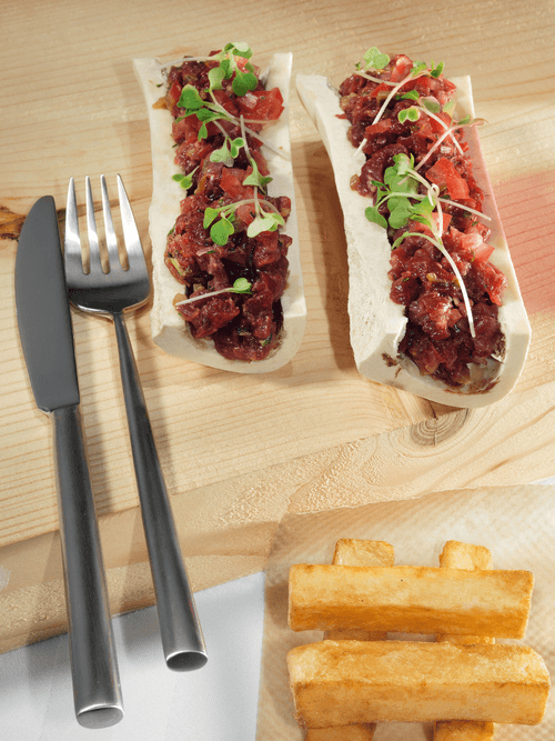 Тартар из говядины с тройной картошкой — это истинное воплощение французской гастрономии, сочетающее элегантность и глубокие вкусовые оттенки. Нежные кубики говяжьей вырезки, пропитанные пряными нотами хрена, лимонной цедры и свежих трав, создают изысканный баланс свежести и насыщенности. Соленые огурцы, лук-шалот и томаты добавляют приятную кислинку и хруст. Тройная картошка, приготовленная по особой технологии, сначала отваривается, затем запекается и, наконец, обжаривается до золотистой корочки, придавая блюду текстурную игру. Такой тартар прекрасно подходит как для торжественного ужина, так и для гастрономического эксперимента, где нежное мясо и хрустящая картошка создают гармонию вкусов. Это блюдо представляет собой искусство кулинарии, отражающее страсть к тонким сочетаниям и богатству французской кухни.