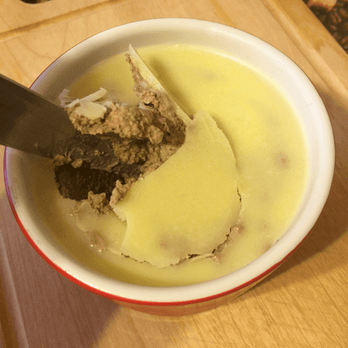 Переложить паштет в форму и залить сверху топленым маслом. Убрать в холодильник на несколько часов.