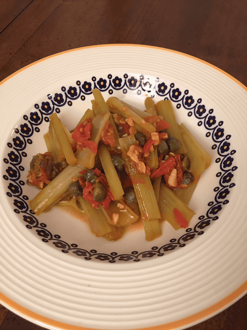 Этот рецепт представляет собой изысканное сочетание каталанского цикория, томатов и чеснока, создающее насыщенный и ароматный вкус. Каталанский цикорий, известный своей легкой горчинкой, при тушении становится нежным, а помидоры добавляют сочности и сладковатых ноток. Чеснок усиливает аромат и привносит легкую пикантность. Завершающие штрихи—каперсы и анчоусы—придают блюду средиземноморскую глубину, а оливковое масло и лимонный сок освежают вкус. Это блюдо родом из европейской кухни, особенно популярно в средиземноморском регионе, где ценят простые, но выразительные сочетания ингредиентов. Идеально подходит как самостоятельное блюдо или гарнир к рыбе и мясу, наполняя трапезу богатым вкусом и питательной ценностью.