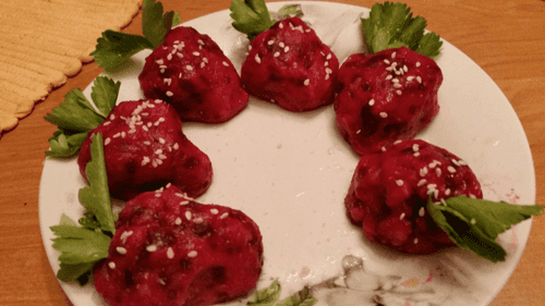Свекольно-селедочная клубника — это оригинальная эстонская закуска, в которой удивительным образом сочетаются яркий цвет свеклы, нежность картофеля и пикантность малосольной сельди. По форме она напоминает клубнику, создавая эффектный визуальный образ на столе. В этом блюде ощущается баланс сладковатой свеклы и солоноватой рыбы, а завершающие нотки придают кунжутные семечки и свежая петрушка. Истоки рецепта уходят в северные традиции, где свекла и рыба — привычные продукты. Закуска идеально подходит для праздничного застолья, удивляя гостей нестандартной подачей и насыщенным вкусом.