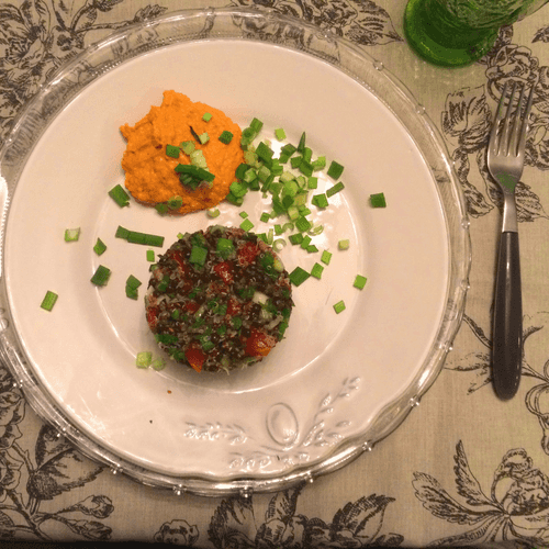 Если Вы пробуете соус на вкус и Вам он кажется чуть кислее чем нужно – то не страшно так как в данном случае кислота уйдет впитавшись в киноа и зелень.
