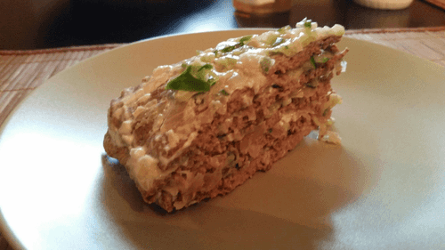Торт из куриной печени со свежим огурцом и луком — необычное, но изысканное блюдо европейской кухни. Его история восходит к традиционным печеночным пирогам, которые ценились за богатый вкус и питательность. Нежные печеночные блинчики, пропитанные ароматом жареного лука и чеснока, создают гармоничную основу. Освежающий хруст огурца добавляет легкость, а майонез придает мягкость и объединяет вкусы. Такой торт идеален как закуска на праздничный стол или как оригинальное блюдо для гурманов, предпочитающих сочетание насыщенных и освежающих нот. Он удивляет балансом текстур — нежность печени, сочность овощей и пикантность специй делают его настоящим кулинарным откровением.