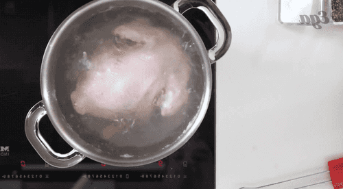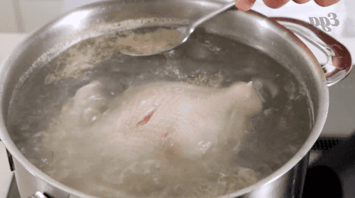 Крупную курицу опустить в кипящую воду и варить до полуготовности двадцать минут, периодически снимая пленку.