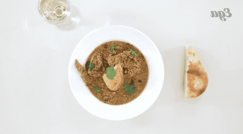 Сациви братьев Тотибадзе — традиционное грузинское блюдо в интерпретации тети художников Георгия и Константина, Наны Константиновны. Сациви называют и ореховый соус со специями, и также блюдо с ним. Существует столько рецептов сациви, сколько грузинских хозяек его готовят. Но основы остаются неизменны: это всегда большое количество толченных в ступке грецких орехов, кинза, смесь хмели-сунели или лучше уцхо-сунели — приправа из голубого пажитника. Главное в этом блюде — соус, чем наваристее бульон тем его вкус насыщеннее. Перед подачей блюдо должно настояться в холодильнике часов восемь, чтобы курица успела пропитаться соусом.