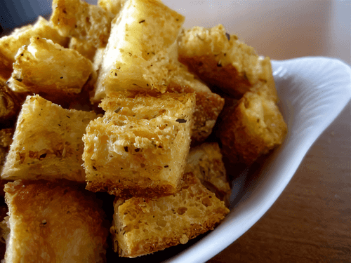 Домашние сухарики из белого хлеба — это простое, но изысканное блюдо русской кухни, пришедшее к нам из глубины веков. Сухарики не только дополняют основные блюда, но и служат самостоятельной закуской. Их хрустящая структура, пропитанная ароматом чеснока и пряностей, делает их идеальным дополнением к супам или салатам. Благодаря запеканию в духовке они приобретают золотистый оттенок и насыщенный вкус. Вкус этих сухариков — гармоничное сочетание мягкой солоноватости, нежной чесночной пикантности и легкой травяной свежести. Они идеально подходят как к традиционному борщу, так и к современным крем-супам, а также могут стать отличным сопровождением к вечернему чаепитию. Рецепт сохраняет простоту и доступность, делая эти сухарики любимым угощением в каждом доме.