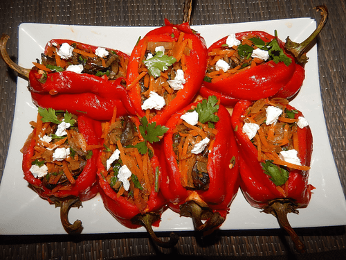 Запеченый перец, фаршированный фетой, обжаренными овощами и грибами