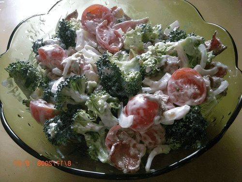 Салат с курицей, брокколи и помидорами черри