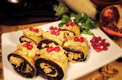 Рулетики из баклажанов с ореховой начинкой