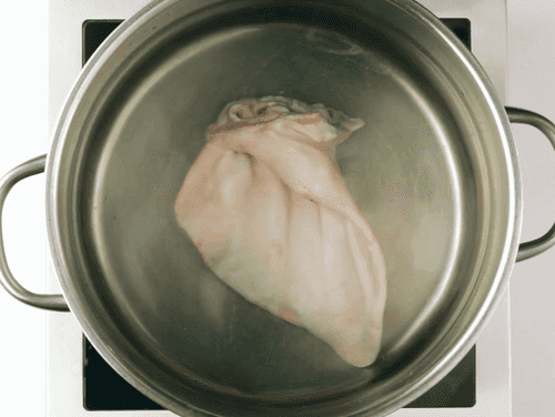 Выложить уши в кастрюлю, залить холодной водой, поставить на сильный огонь, довести до кипения и варить 20 минут. Слить воду, уши промыть. Снова выложить уши в кастрюлю, залить холодной водой, добавить имбирь, лук (можно использовать лук-порей) и целые горошины сычуаньского перца. Варить на медленном огне 3-4 часа.