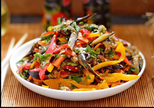 Баклажаны с курицей по-корейски — это яркое и насыщенное блюдо, которое объединяет нежность куриного филе с пикантностью овощей и ароматных специй. Оно отражает философию корейской кухни, где баланс вкусов играет ключевую роль. Баклажаны, пропитанные соевым соусом, становятся мягкими и слегка карамелизированными, а перец и морковь добавляют легкую сладость и хруст. Кориандр и черный перец придают пряность, делая вкус глубже и насыщеннее. Это блюдо идеально подходит как для повседневного ужина, так и для особых случаев, создавая атмосферу уюта и наслаждения. Его можно подавать с рисом или лапшой, дополняя свежими зелеными листьями и кунжутом. Исторически оно вобрало в себя элементы традиционной корейской кухни, где острые и маринованные ингредиенты сочетаются с натуральными вкусами. Быстрое приготовление делает его отличным вариантом для динамичного образа жизни.