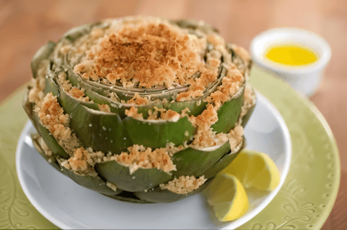 Артишоки, нежно фаршированные орехово-сметанным кремом, — изысканное блюдо средиземноморской кухни, пропитанное духом древних традиций. Артишоки, ценимые гурманами за их утончённый вкус, в этом рецепте раскрывают свою мягкость и тонкую ореховую нотку благодаря крему из грецких орехов и сметаны. Лимонная цедра и сок добавляют пикантность, делая блюдо лёгким и освежающим. Подаваемое как закуска или основное блюдо, оно прекрасно сочетается с белым вином или лёгким салатом. Истоки этого рецепта уходят в глубь веков, когда артишоки считались пищей богов. Сегодня они остаются символом кулинарного мастерства, а орехово-сметанный крем превращает их в нежное, гармоничное наслаждение, подающееся как в горячем, так и в холодном виде.