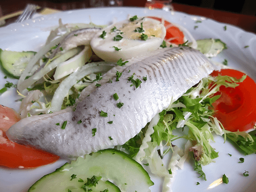 Тщательно вымытую сельдь замочить на 6-8 часов в холодной воде, затем воду слить.