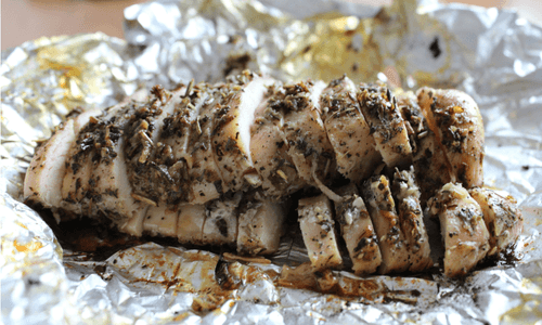 Спустя 1,5 часа поместить филе на противень, покрытый фольгой (не заворачивать в фольгу), и поставить в духовку, предварительно разогретую до 250 градусов. Запекать при такой температуре ровно 15 минут.