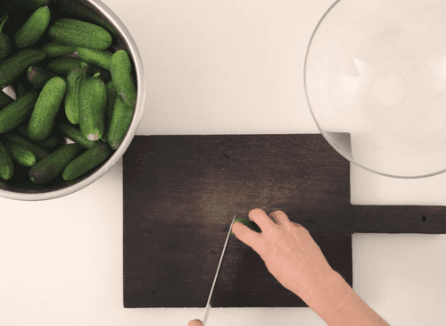 Огурцы промыть и срезать кончики. Чеснок очистить.
