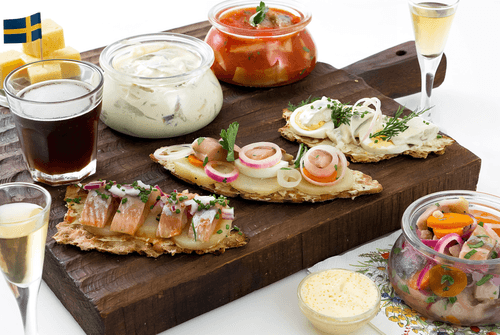 Традиционная шведская праздничная закуска. S.O.S. — это sill (селедка), ost (сыр) и snaps (снапс, то есть традиционная шведская водка). Чаще вместо снапса в аббревиатуре подразумевается smör (масло), потому что снапс желателен, но необязателен. Селедку шведы любят мариновать самыми разными способами и любят, когда на столе стоит именно несколько видов: с горчицей, луком, чесноком, укропом, свеклой, карри и так далее. Едят ее и просто так, и на хлебе со сливочным маслом, и на хлебцах, и с отварным картофелем, и со сметаной — и с выдержанным сыром.