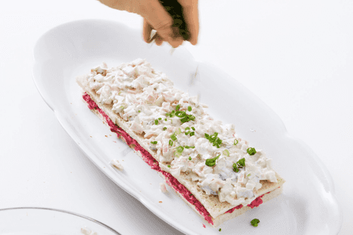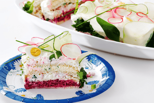 Бутербродный торт, или смёргосторт, появился в шведской кулинарии в 1940-х годах и прочно укоренился в ряде праздничных мероприятий, став неотъемлемой частью торжеств, подобно тому, как салат оливье стал символом русских праздников. Эта закуска используется на множестве событий, наиболее часто её можно встретить на крестинах и днях рождения. Существует множество вариаций как начинок, так и форм и способов подачи, и это лишь один из возможных примеров.