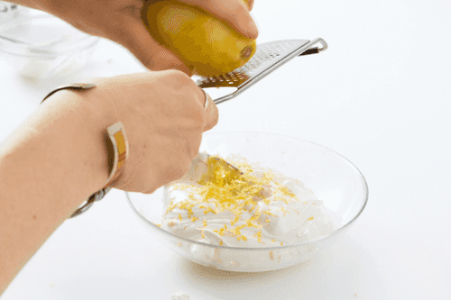 В чаше смешать по 100 грамм сметаны и сливочного сыра, половину чайной лужки хрена и цедру одного лимона.