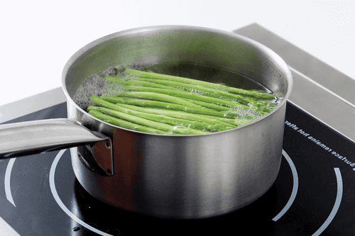 Отломав сухие концы на ножках, отварить спаржу в подсоленной воде три-четыре минуты. Промыть ее холодной водой и разрезать на две-три части.