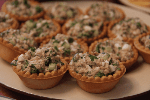Тарталетки с салатом из тунца — это элегантное и утонченное блюдо французской кухни, воплощающее сочетание свежести и насыщенного вкуса. Эти миниатюрные хрустящие корзиночки наполняются нежным салатом из сочного тунца, хрустящих огурцов, ароматной зелени и мягких яиц, создавая гармонию текстур и вкусов. Легкая пикантность соли и перца подчеркивает изысканность блюда, а капля майонеза придаёт кремовую консистенцию. Первоначально тарталетки появились во французской гастрономии как изысканная закуска для приемов, их универсальность позволяет подавать их как аперитив или основное блюдо на праздничном столе. Эти изящные тарталетки не только радуют вкусом, но и привлекают внимание своей утонченной подачей, превращая любую трапезу в настоящее гастрономическое удовольствие.