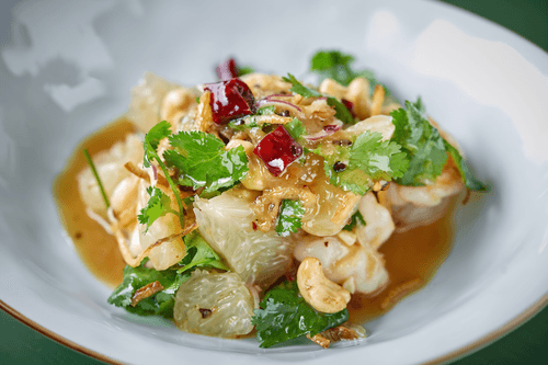 Кинзу мелко нарезать, перец чили очистить и нарезать. Смешать устричный соус, соус чили, кунжутное масло, кинзу, подготовленный перец чили и соус «Эбара». Все перемешать. Заправка готова.