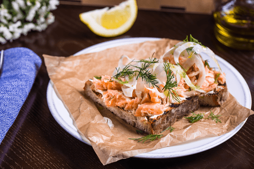 Брускетта с лососем, фенхелем и сыром