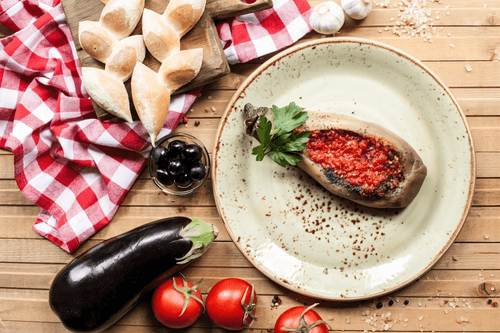 Запечённый баклажан с аджикой — это гармония простоты и насыщенного вкуса. Вдохновлённое средиземноморской кухней, это блюдо сочетает сладковатый аромат нежного баклажана с пикантной остротой аджики. Баклажан, запечённый до мягкости, приобретает кремовую текстуру, а добавление аджики раскрывает его вкус многогранными оттенками специй. Лёгкое посыпание соли подчеркивает естественную сладость овоща, а свежая зелень — укроп, петрушка и кинза — придаёт яркость и свежесть. Блюдо идеально подходит как самостоятельная закуска или дополнение к мясным и овощным блюдам. Оно прекрасно раскрывает традиционные греческие кулинарные приемы, в которых овощи играют главную роль. Простота приготовления делает этот рецепт незаменимым для тех, кто ценит здоровую и вкусную еду.