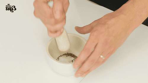 Перемолоть ее в ступе вместе с солью и двумя зубчиками свежего чеснока.