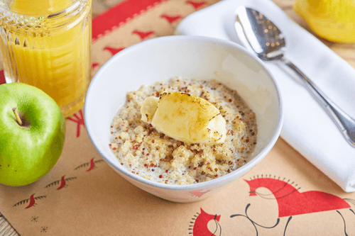 Подать кашу с лимонным крем-брюле и сливочным маслом.