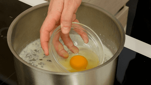 Аккуратно с помощью небольшой чашки добавить яйца в суп по одному. Важно чтобы они не склеились между собой.