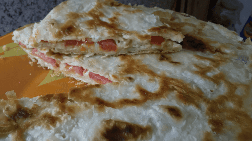 Пирог из лаваша с яйцами, помидором и колбасой