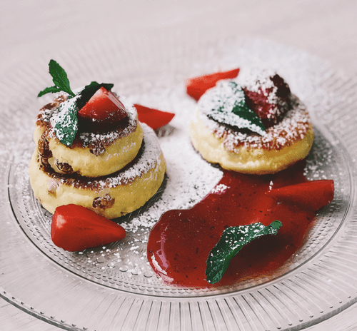 Сырники с клубничным соусом — это нежное и ароматное блюдо русской кухни, которое сочетает в себе мягкость творожного теста и яркую свежесть ягодного соуса. Истоки рецепта уходят в глубину веков, когда творог был основой многих блюд славянской кухни. Благодаря манке сырники приобретают легкость, а изюм добавляет тонкую сладкую нотку. Клубничный соус с лаймом и мятой превращает классическое лакомство в настоящее гастрономическое наслаждение. Хрустящая корочка, воздушная текстура и кисло-сладкий вкус делают их идеальными для завтрака или десерта. Подавая их с ароматным клубничным мохито-соусом, вы получите гармоничное сочетание традиции и современности — нежность сырников прекрасно сочетается с освежающими ягодными оттенками. Это блюдо не только согревает душу, но и радует вкусовые рецепторы!