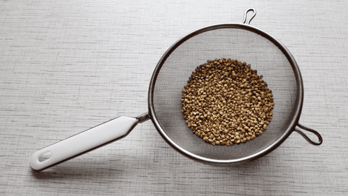 Промыть зеленую гречневую крупу в сите.