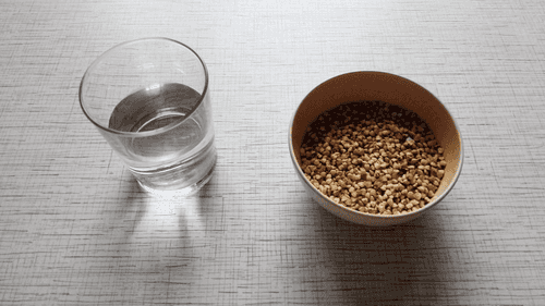 Закрыть миску крышкой, чтобы поверхность гречневой крупы сильно не пересыхала, оставить при этом щель для воздуха. Оставить на сутки.