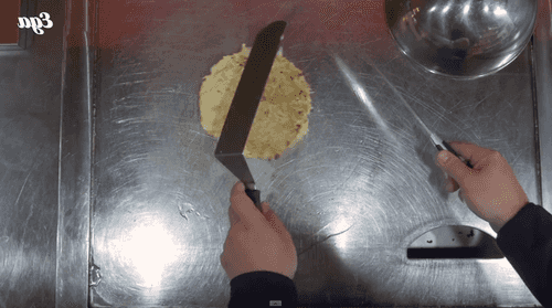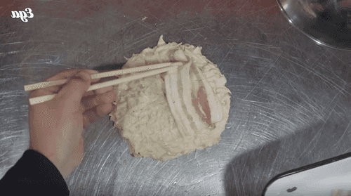 Перевернуть окономияки, накрыть крышкой и жарить еще 2–3 минуты. Повторить это для еще трех блинов.