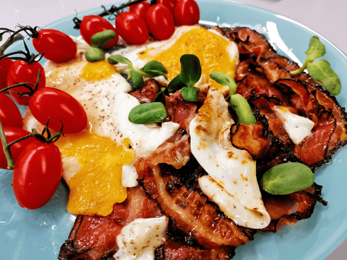 Яичница по-британски — это классический завтрак, восходящий к традициям английской кухни, где простота сочетается с насыщенным вкусом. Хрустящий бекон, обжаренный до золотистой корочки, придает блюду насыщенный аромат и текстуру, а яйца, приготовленные с нежным полупрозрачным желтком, дополняют его мягкостью. Свежее молотый черный перец подчеркивает глубину вкуса, а зелень придает свежесть и легкость. Это блюдо идеально как для быстрого завтрака, так и для неспешного утреннего наслаждения с тостами и чашкой крепкого чая. Британцы ценят его за сытность и простоту, а его вариации можно встретить на столах по всему миру. Яичница по-британски — это не просто еда, а уютная атмосфера традиционного английского утра.
