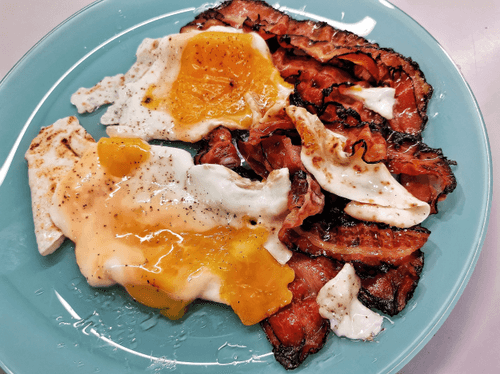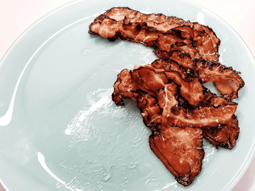 Выложить бекон на тарелку.
