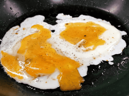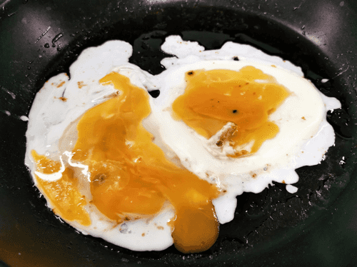 Жарить 3–5 минут, желток слегка «расшевелить» вилкой или ножом.