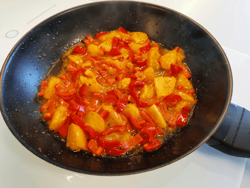 Пряная яичница по-восточному — это яркое и ароматное блюдо восточно-индийской кухни, где сочетаются пряности и свежие овощи. Исторически индийская кухня славится искусным балансом специй, и этот рецепт не исключение. Желтые помидоры придают легкую кислинку, а перец рамиро — сладковатый оттенок. Смесь карри, гарам масала и мит-карри-масалы создают насыщенный аромат, который мгновенно пробуждает аппетит. Яичница готовится быстро на сильном огне, что делает текстуру нежной, а края слегка хрустящими. Подается горячей, она идеально сочетается с хрустящим хлебом или лепешками. Это блюдо идеально для завтрака, бодрящее и насыщенное, а его восточные специи делают каждый кусочек настоящим гастрономическим приключением.