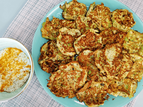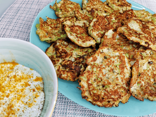 Оладьи из кабачков с чесноком и сметанным соусом